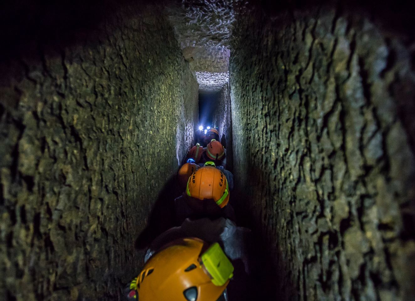 The heart of the "Speleo Light" adventure takes place in the narrow tunnels of the ancient 'Bolla' aqueduct.