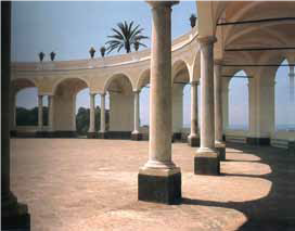 Affacciandoci al centro della passeggiata, ammiriamo l’architettura disegnata dalla scala ellittica che conduce alla fontana e al Palmeto. Proseguendo nella passeggiata e volgendo le spalle al mare, ammiriamo il Vesuvio che domina il paesaggio con la sua imponenza, sulla stessa prospettiva Villa Ruggiero, a destra Villa Favorita.