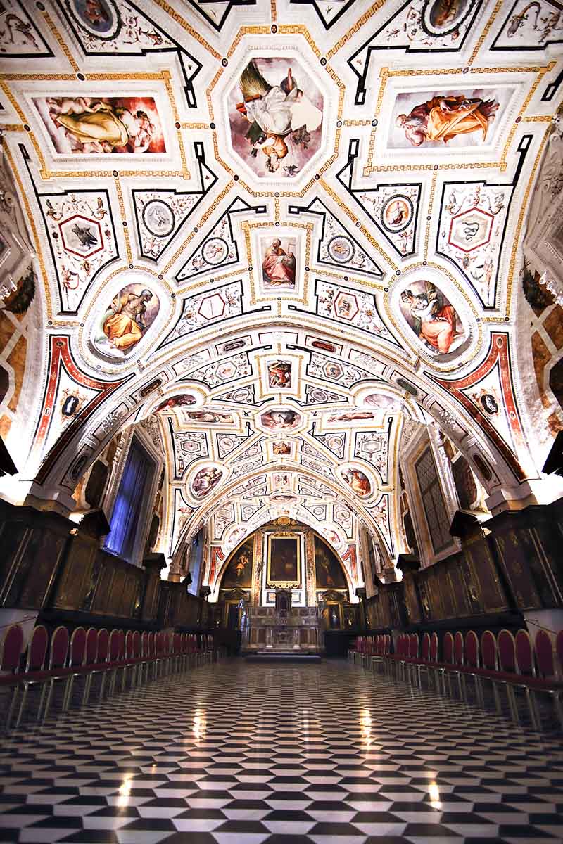 Ammira il Complesso Monumentale di Sant'Anna dei Lombardi, un eccezionale esempio di Rinascimento Toscano nel cuore di Napoli. La visita inizia con l'incontro con il genio di Giorgio Vasari: la Sacrestia, capolavoro del Manierismo, ti accoglierà con una volta affrescata che riproduce una spettacolare ed allegorica sfera celeste. Osserva i magnifici intarsi lignei di Fra Giovanni da Verona, perfetti capolavori di prospettiva e ebanisteria.
